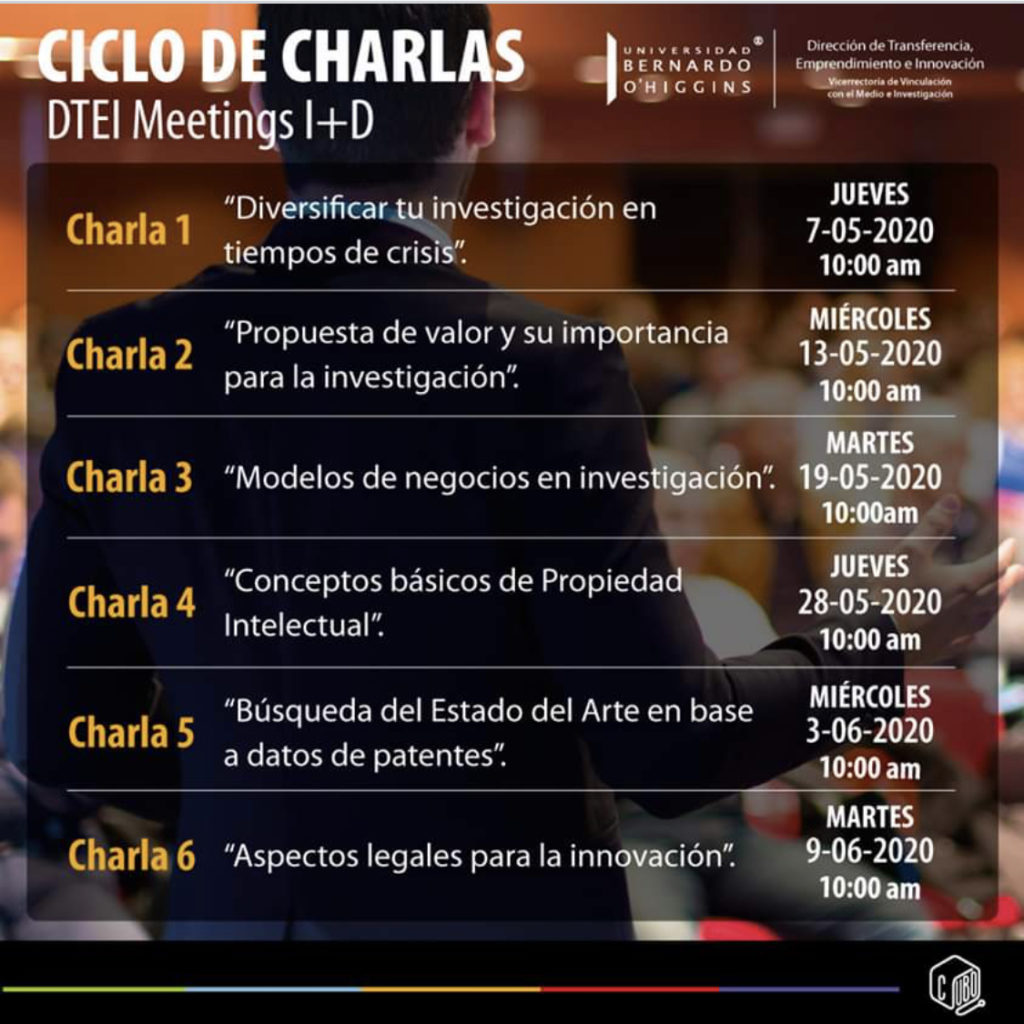 La Dirección de Transferencia, Emprendimiento e Innovación (DTEI) de la Universidad Bernardo O’Higgins invita a la comunidad académica a participar en el Ciclo de Charlas DTEI Meetings I+D #93848896550, cuyo objetivo es introducir a todos aquellos interesados en la gestión de la investigación en un ambiente universitario.