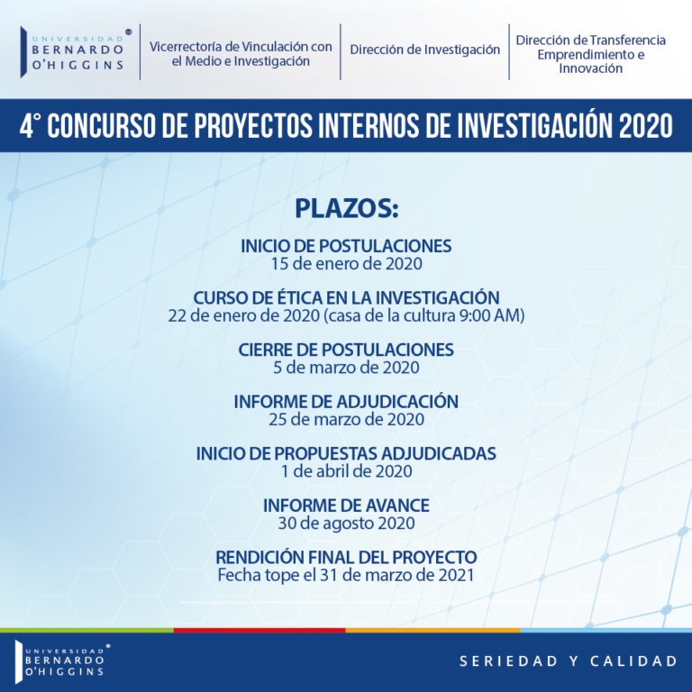 El 15 de enero se abrió oficialmente las postulaciones al 4º Concurso de Proyectos internos de Investigación 2020. Este concurso busca fortalecer la capacidad investigativa de los